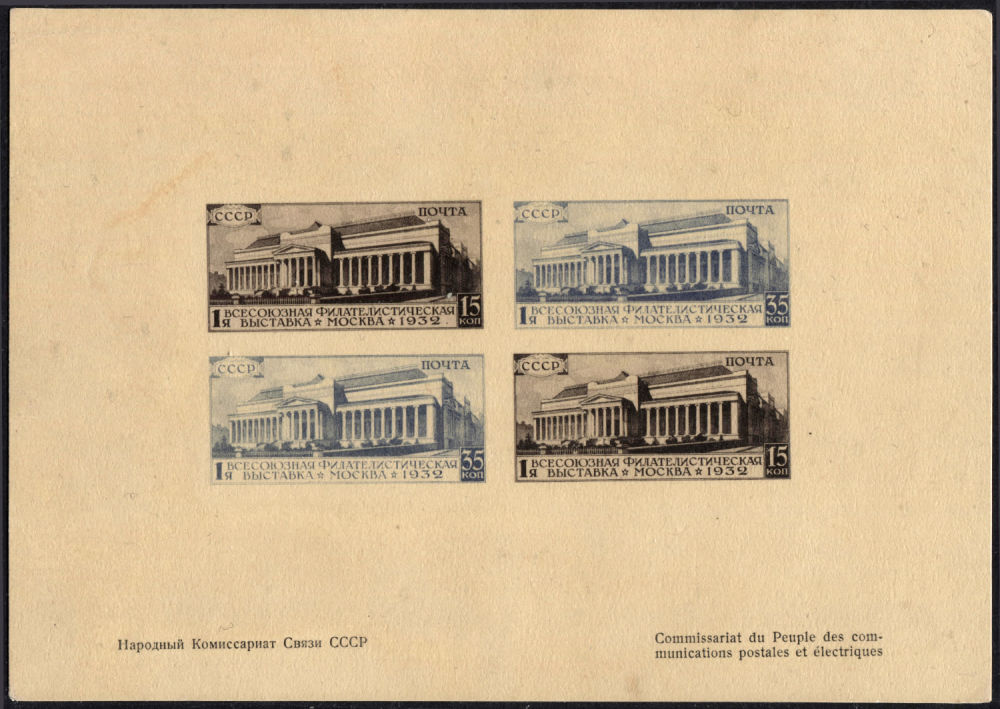 1932 г. СССР. СК SS 01. "Картонка". Оценка: 2.500.000 р. 1-я Всесоюзная филателистическая выставка в Москве. Сувенирный почтовый блок. Свежее состояние. Крайне редкий, знаменитый блок советской филателии.