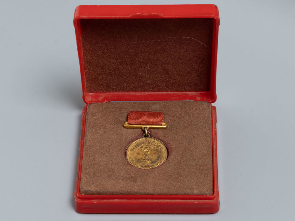 Пловчиха Забродина Т.М. Чемпион СССР по плаванию. Золотая медаль. 1965 г. В родной коробке