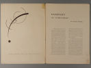 Предлагаемый номер посвящен Василию Кандинскому. В нем представлены две высококачественные цветные литографии Кандинского и его рисунки датированные 1921–1927 гг. Автор текста Andre Chastel – французский искусствовед, историк итальянского Ренессанса. Во Франции его называют «одной из самых влиятельных фигур в истории искусства во второй половине XX века». Оригинальное издание опубликовано в январе 1960 г. для выставки 40 картин КАНДИНСКОГО с 1921 по 1927 г. в Galerie Maeght. Размер 38х28 см. К сожалению отсутствуют страницы 4-6.В комплектном журнале было 5 оригинальных литографий, включая обложку и 2 двухстраничных цветных вставки и 9 черно-белых иллюстраций.