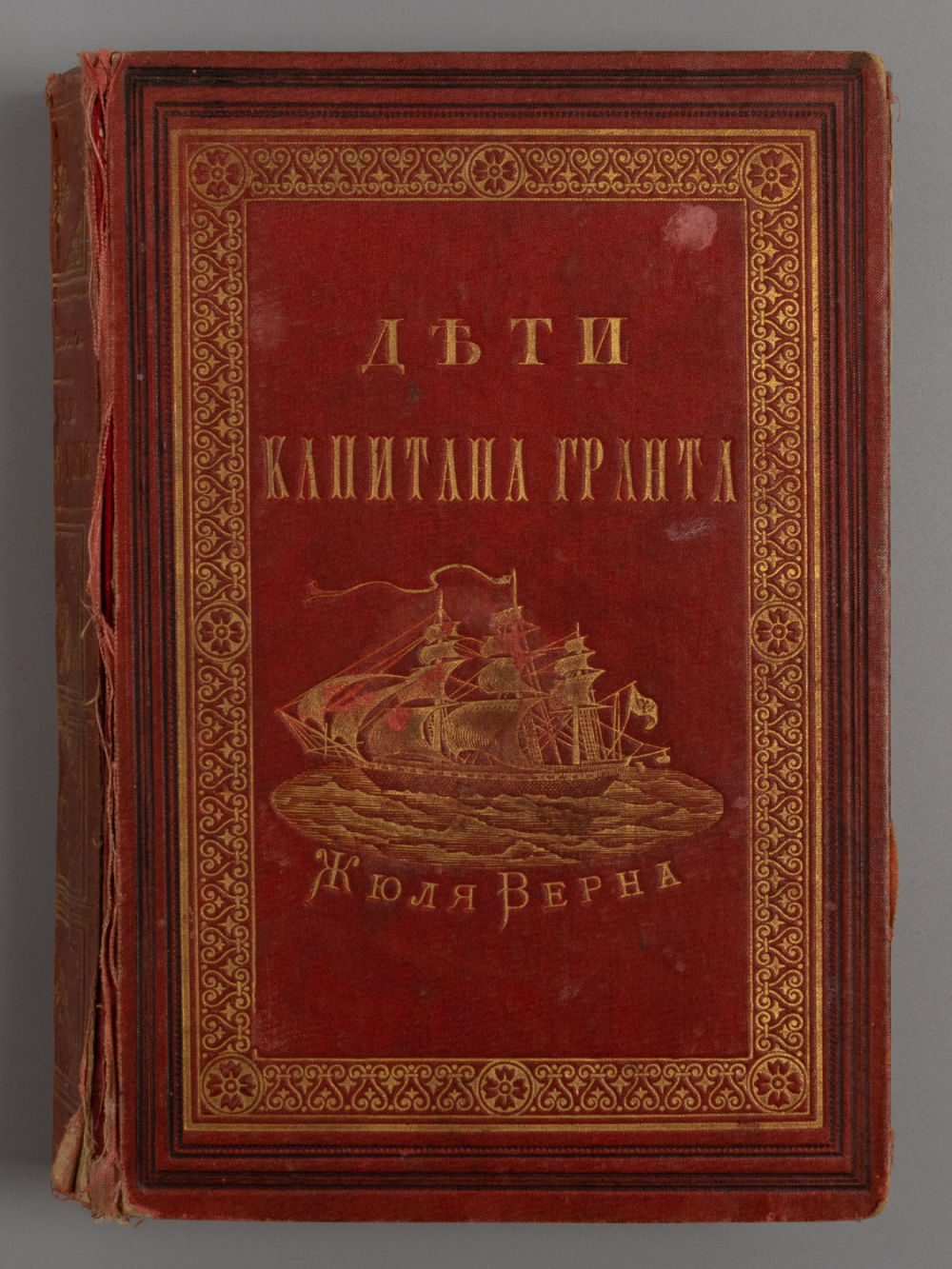 Верн Ж. Дети капитана Гранта. Путешествие вокруг света. СПб.: кн. маг. «Нового времени», 1881. – [2], 804, III с., илл. Твердый издательский переплет с золотым тиснением, с сохранением мягких издательских обложек. Формат 215х145 мм.