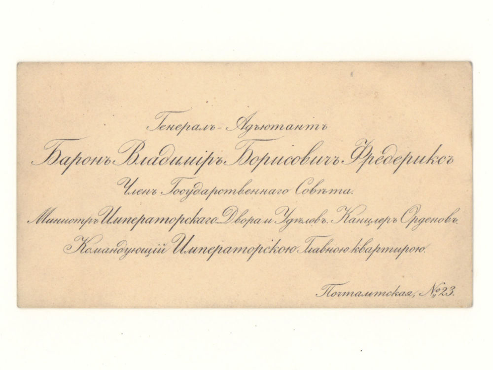 Визитка. Генерал-адъютант барон Владимир Борисович Фредерикс. 1890-е гг