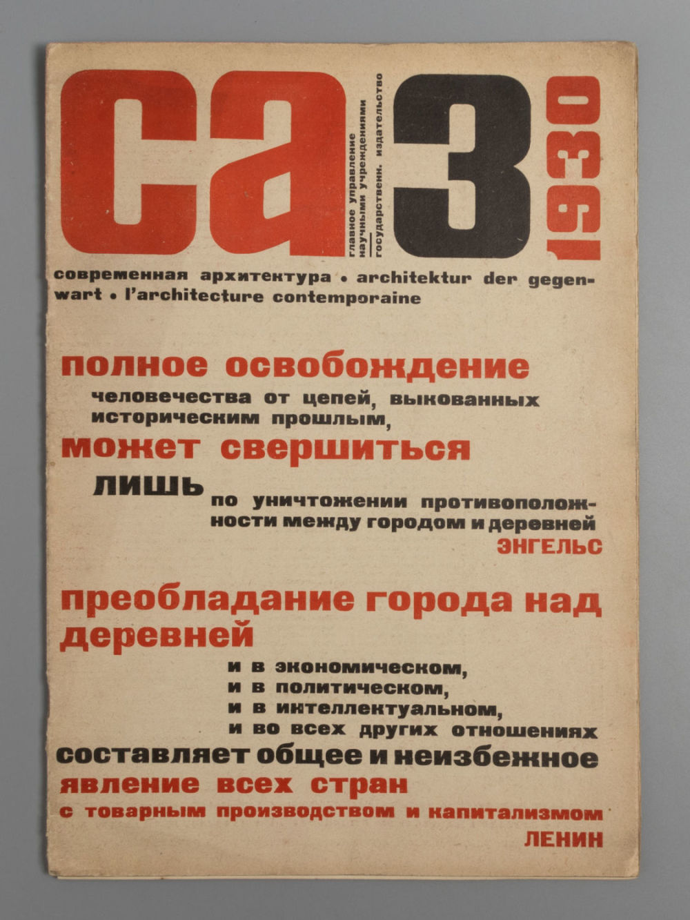 Современная архитектура — советский авангардный архитектурный журнал. Ответственные редакторы — А.А. Веснин и М.Я. Гинзбург. Журнал выходил шесть раз в год небольшим тиражом в 1500 экземпляров. Номера имели сквозную пагинацию. Большинство выпусков журнала оформлял Алексей Ган. В подготовке журнала принимали участие ведущие мастера периода авангарда. В состав первой редколлегии кроме Веснина и Гинзбурга входили: А.К. Буров, В.А. Веснин, Г.Г. Вегман, И.А. Голосов, А.М. Ган, А.Ф. Лолейт, Г.М. Орлов и И.Н. Соболев. Большинство членов редколлегии работали в журнале на протяжении всего 5-летнего периода его существования. 1930 — последний год выхода «СА» в свет, в следующем году журнал был закрыт.